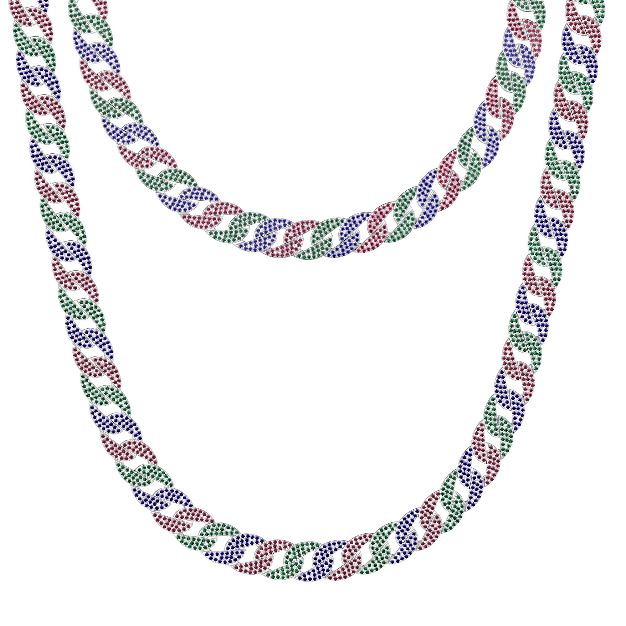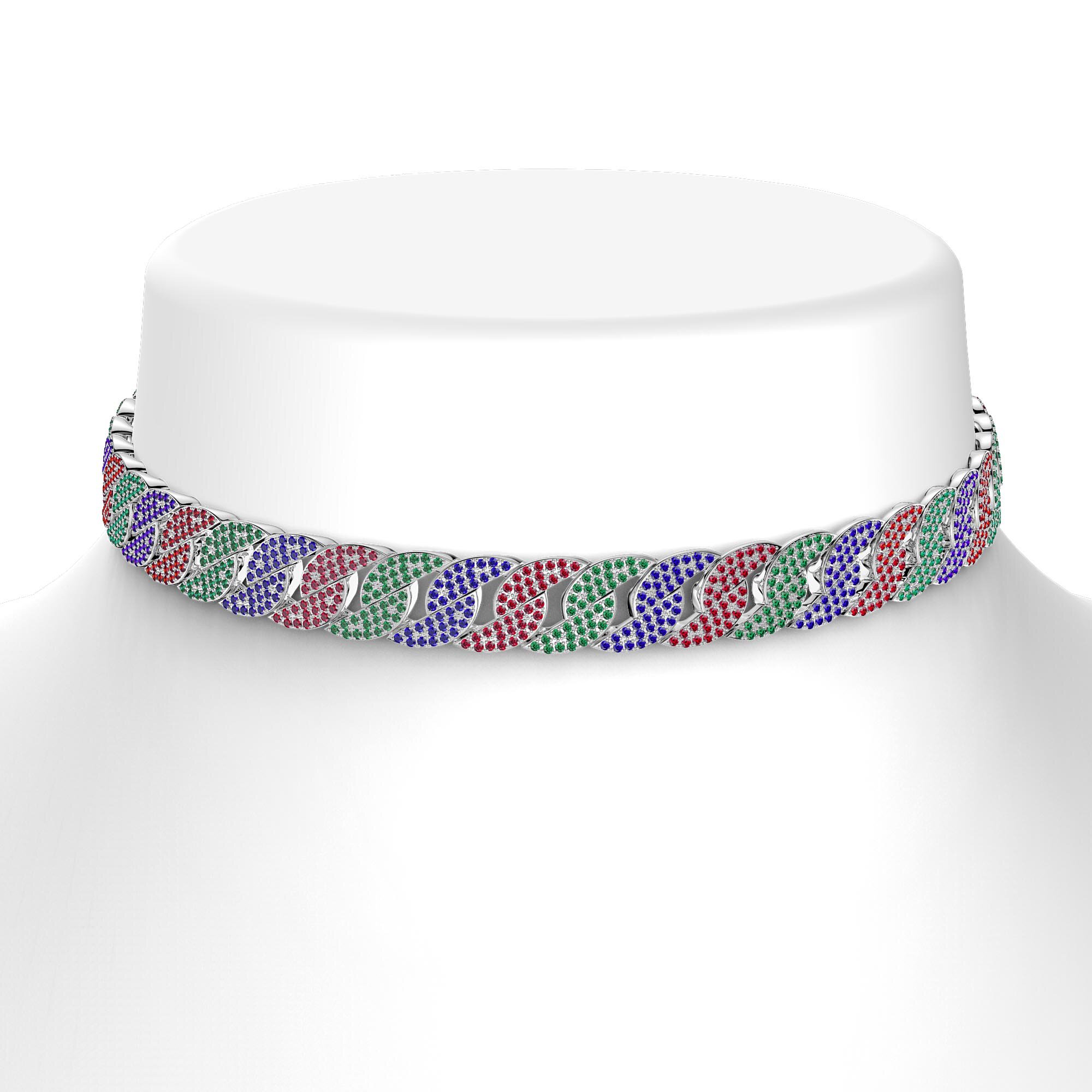 Each link of this choker necklace is dripping with sparkly pave White Sapphire, Ruby, Blue Sapphire or Emerald CZ hand set in sterling silver for an uber chic, modern and timeless look that perfectly complements the wearer. This Miami Cuban link choker necklace can be worn every day or for special occasions. Wear it by itself or stacked, a true fine jewellery statement piece. Be prepared for compliments.