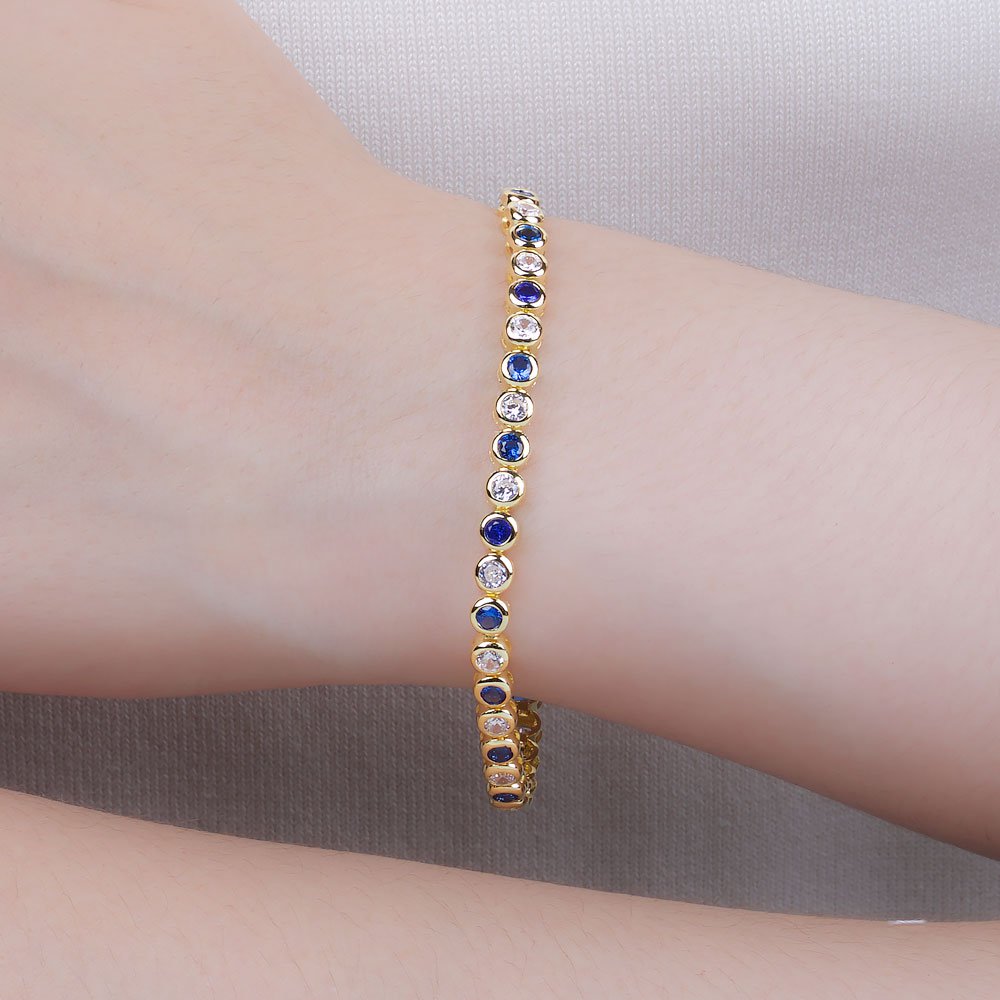 Approx. 3.6ct Laboratory-Grown Blue and White Sapphire and Diamonds for 7Inches Bracelet