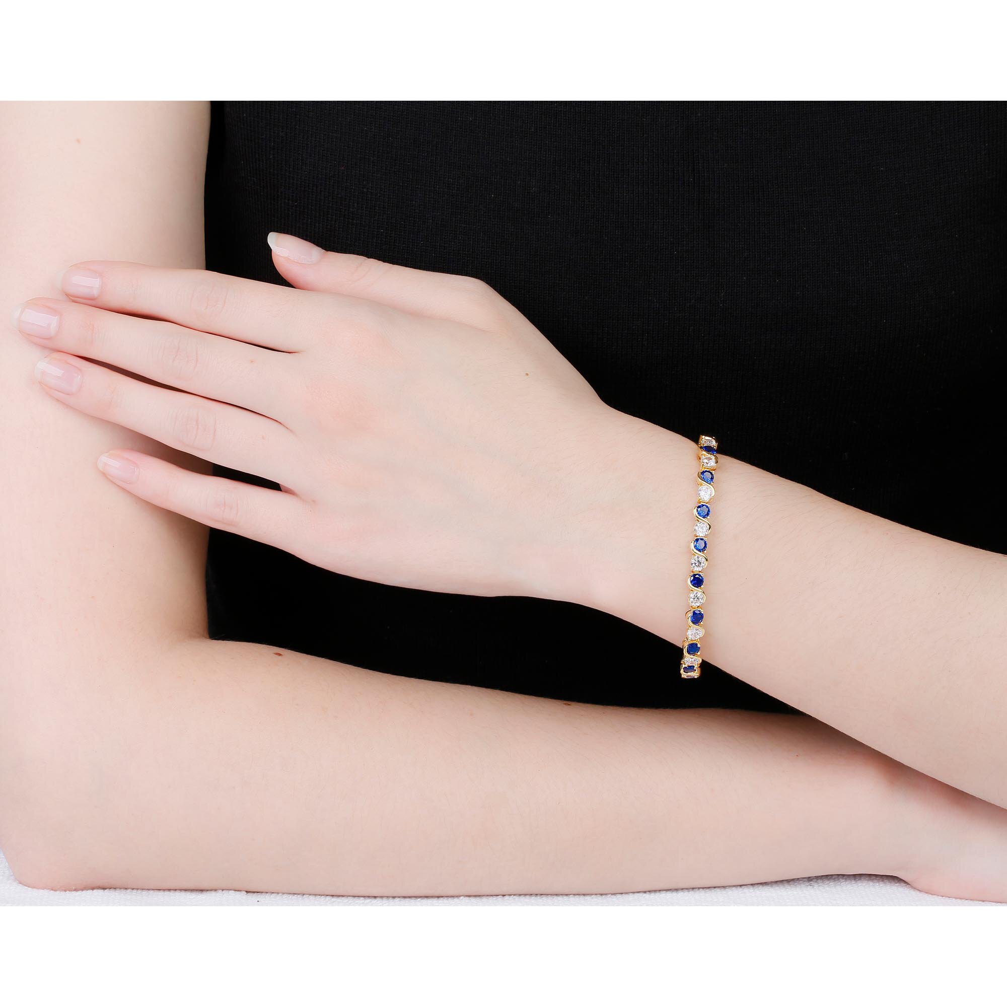 Approx. 4.5ct (18 of 4mm) natural Sapphire and 4.5ct (18 of 4mm) GH/SI Diamonds for 7Inch Bracelet