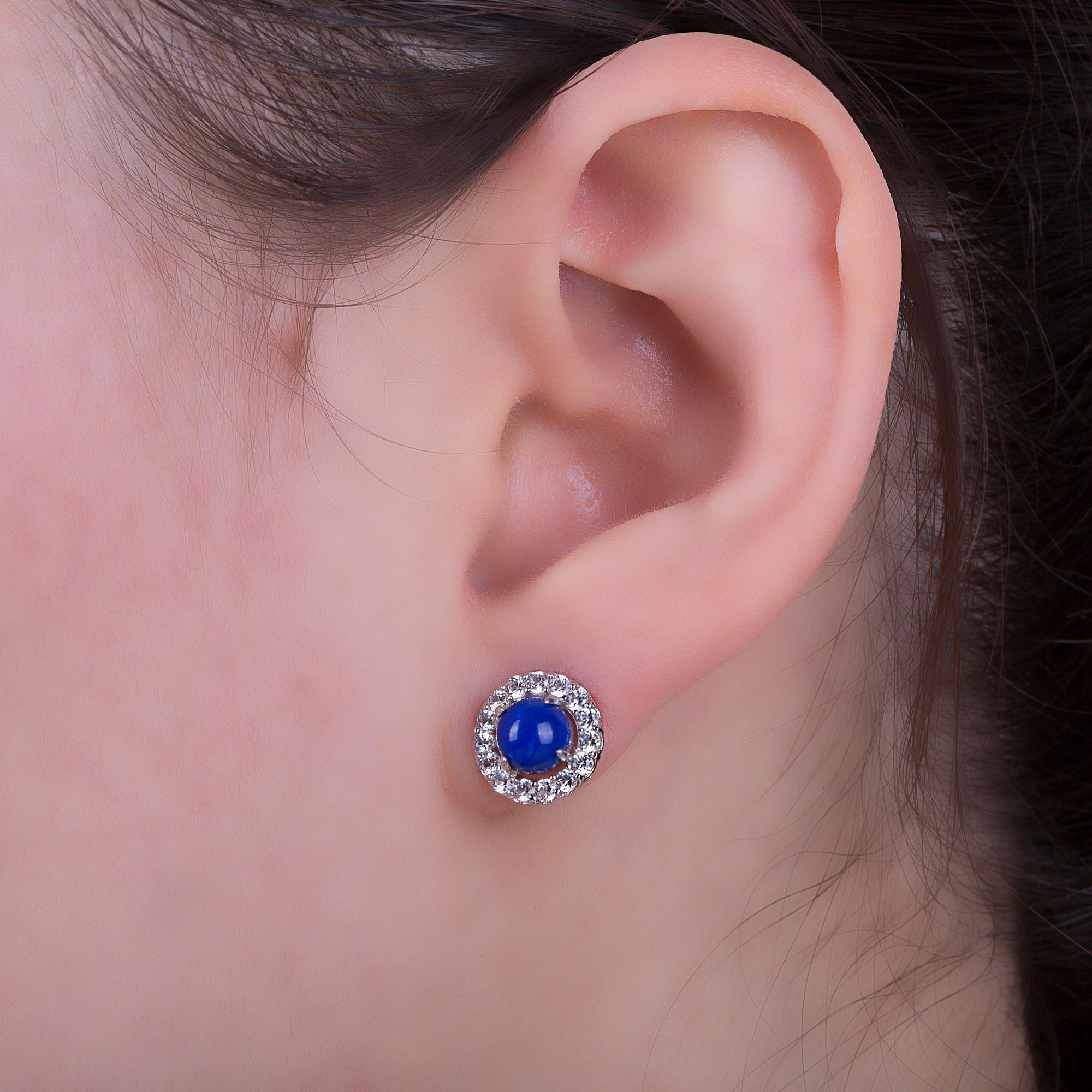Approx. 1.0ct (2 x5mm) natural Lapis and Approx. 0.42ct (28 x 1.5mm) Laboratory-Grown EF VS Diamonds