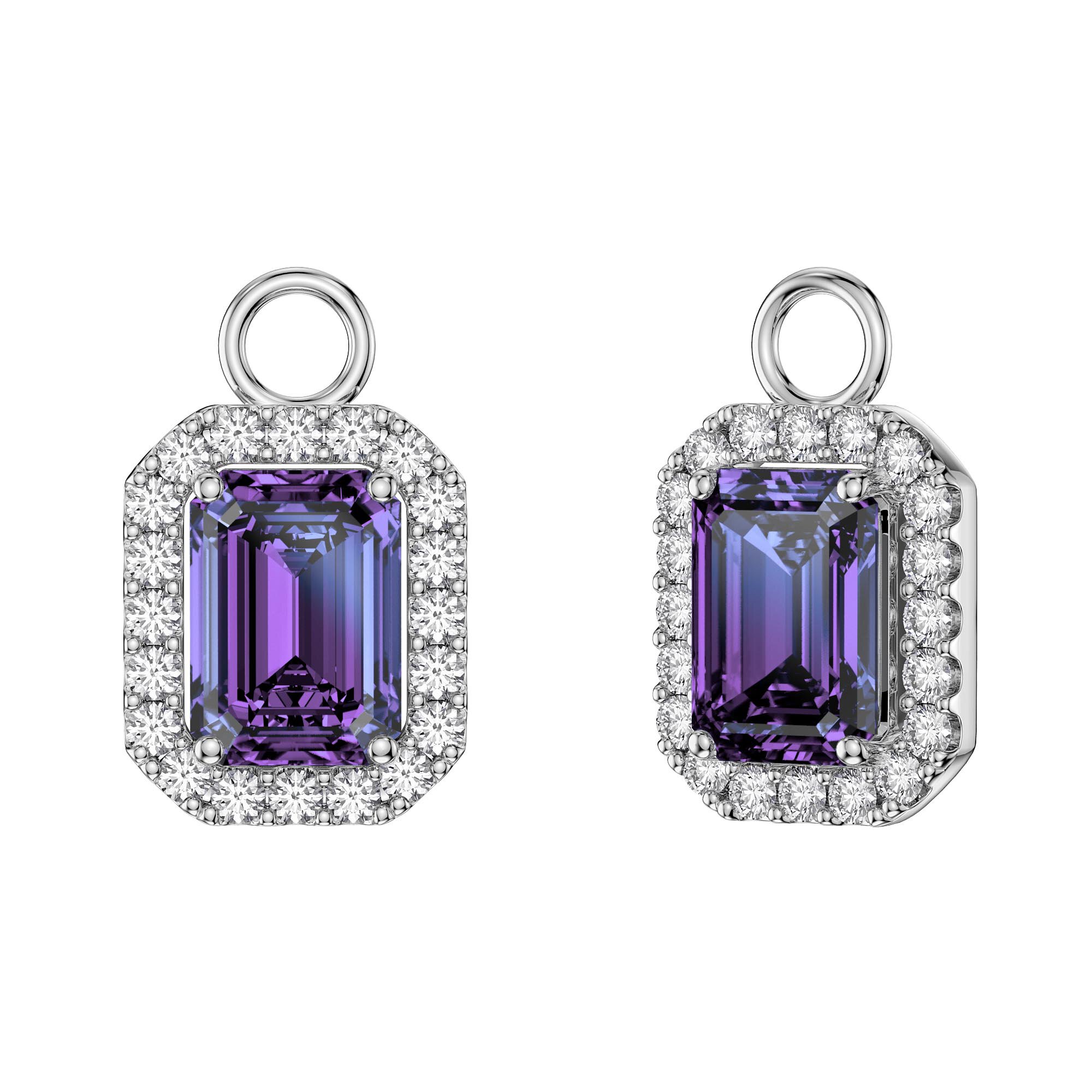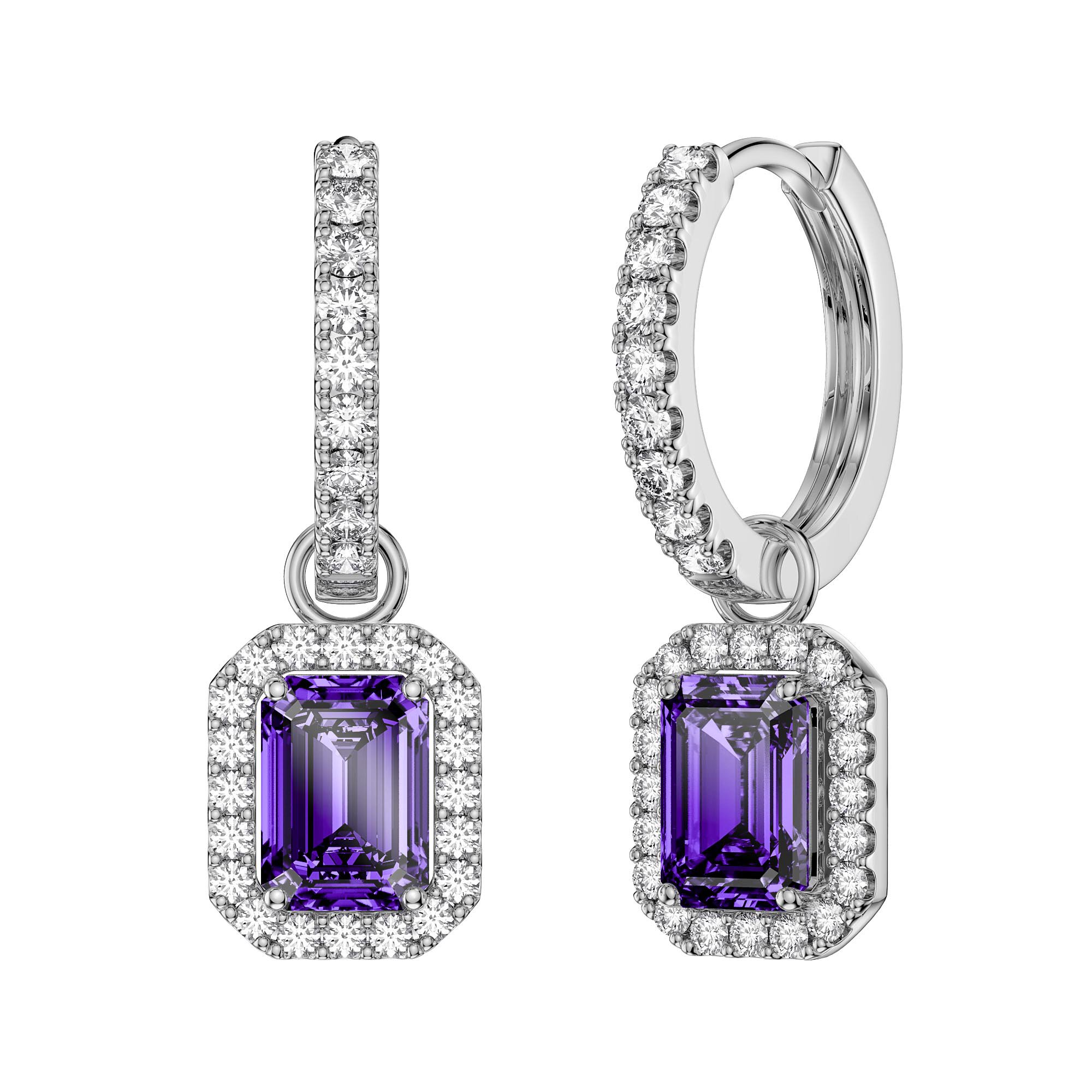 Approx. 2ct (2 of 5mm by 7mm) Emerald Cut natural Amethyst and 0.47ct (40 of 1.2mm) Laboratory-Grown White Sapphire