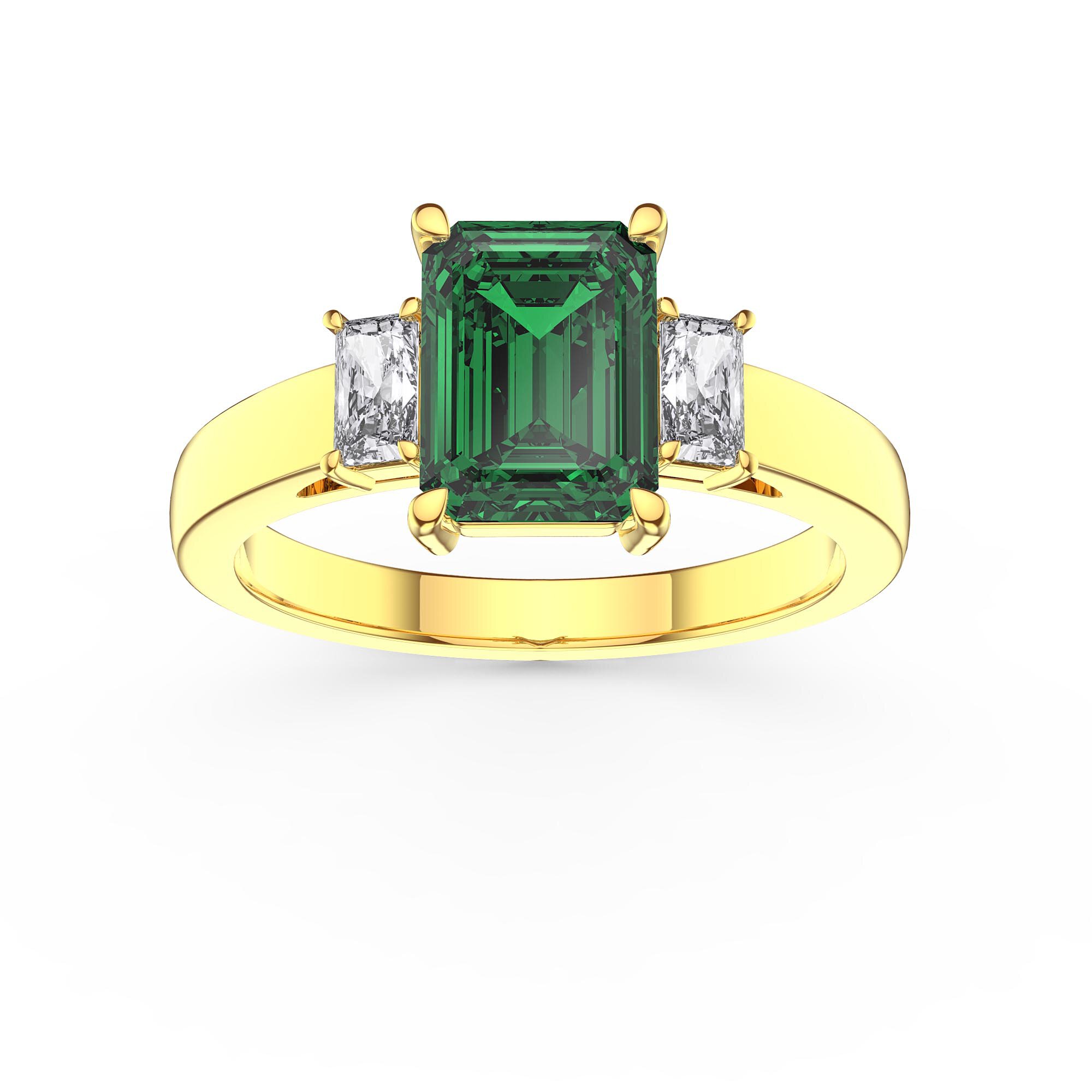 Approx. 2.0ct (6.0mm by 8.0mm) Emerald Cut Laboratory-Grown Emerald and Approx 0.4ct (2 x 2mm by 4mm) Laboratory-Grown White Sapphire
