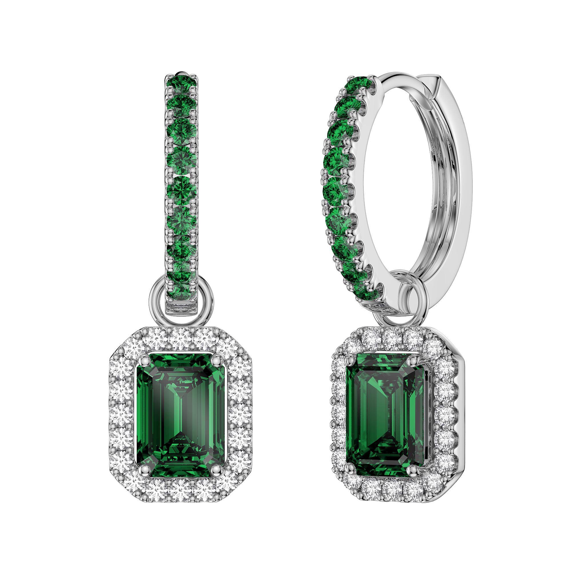 Approx. 2ct (2 of 5mm by 7mm) Emerald Cut Laboratory-Grown Emerald and 0.47ct (40 of 1.2mm) Laboratory-Grown White Sapphire