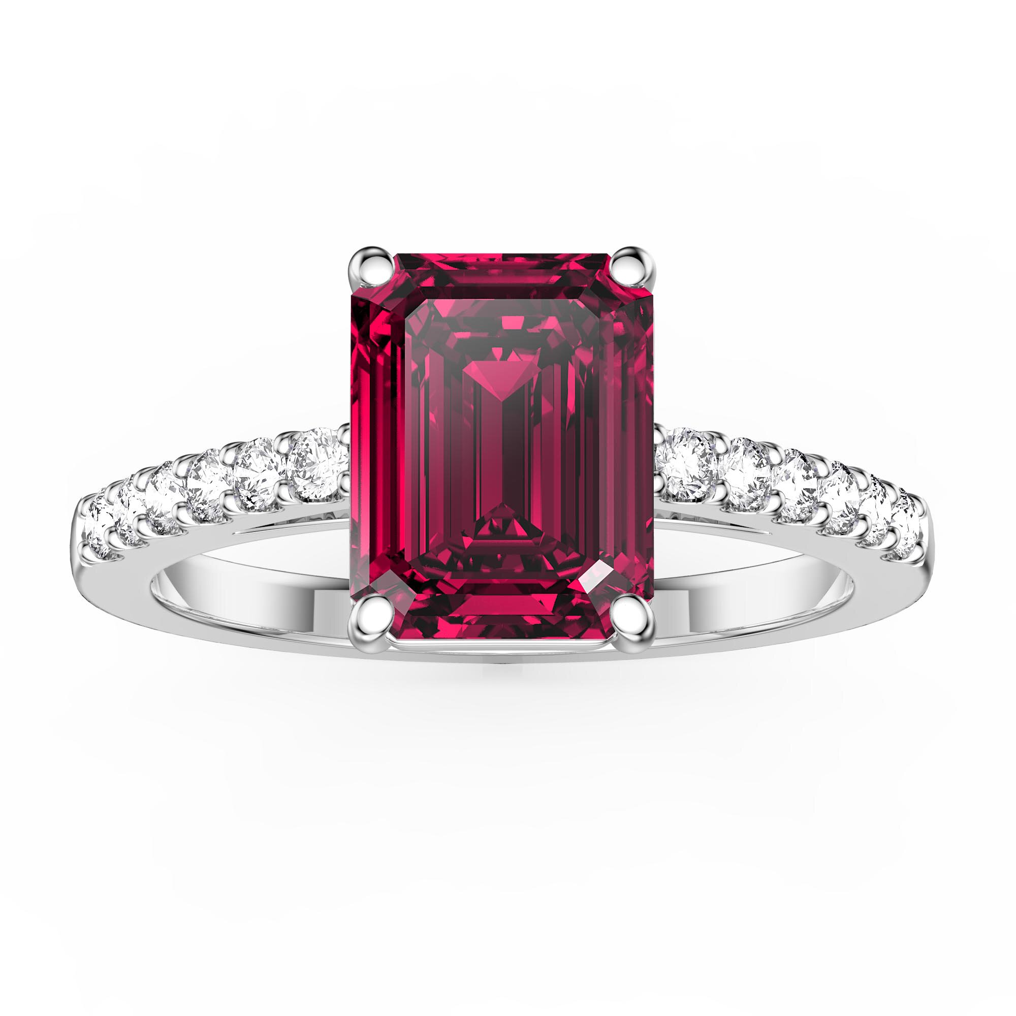 Approx. 2ct (6.5mm by 8.5mm) Emerald Cut Laboratory-Grown Ruby and and Approx. 0.18ct (12 of 15mm ) EF VS Laboratory-Grown Diamond