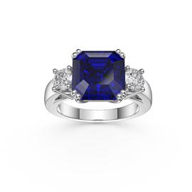 Approx. 3.5ct 8.5mm by 8.5mm Asscher Cut Laboratory-Grown Ruby and Approx. 0.5ct (2 x 4mm) Laboratory-Grown EF VS Diamonds