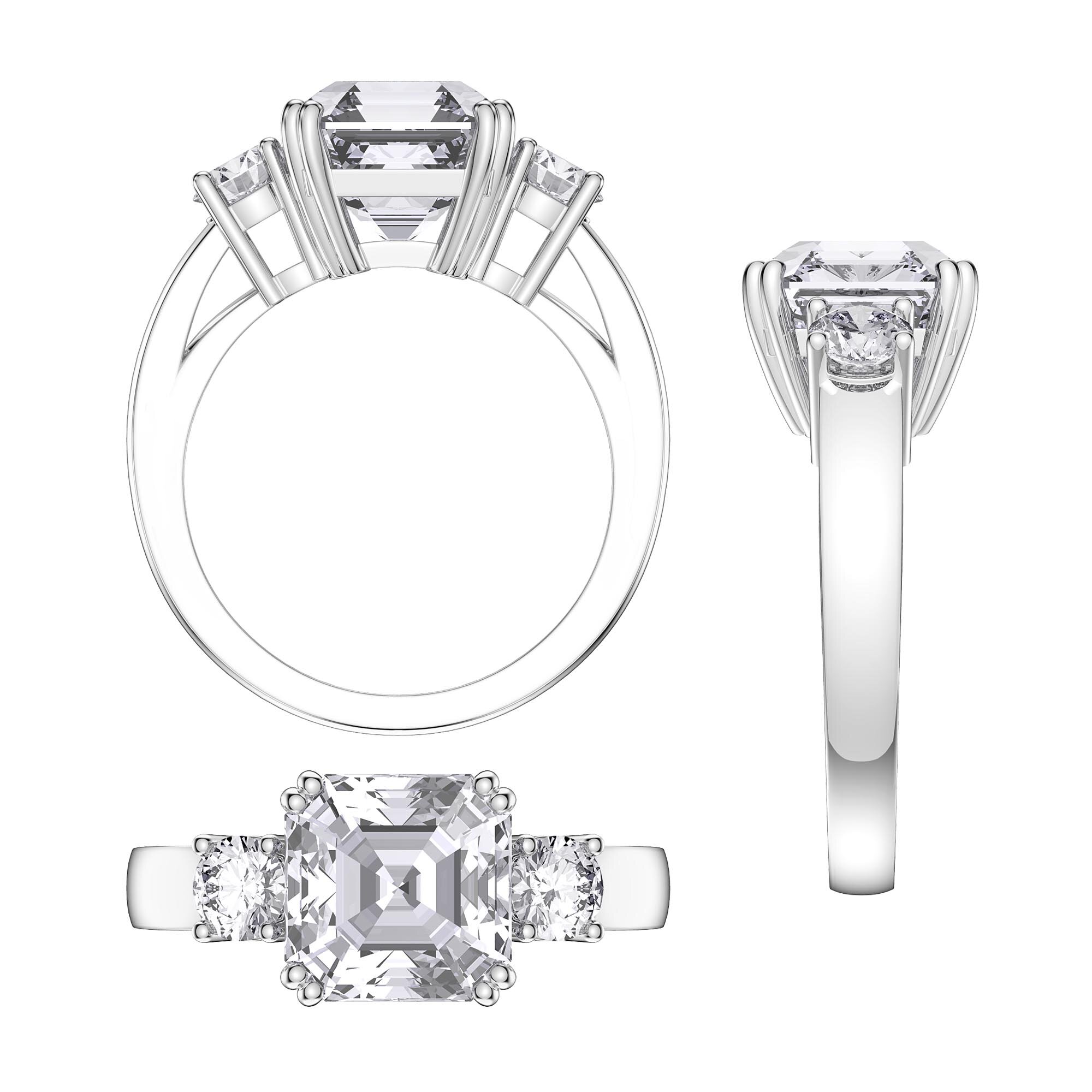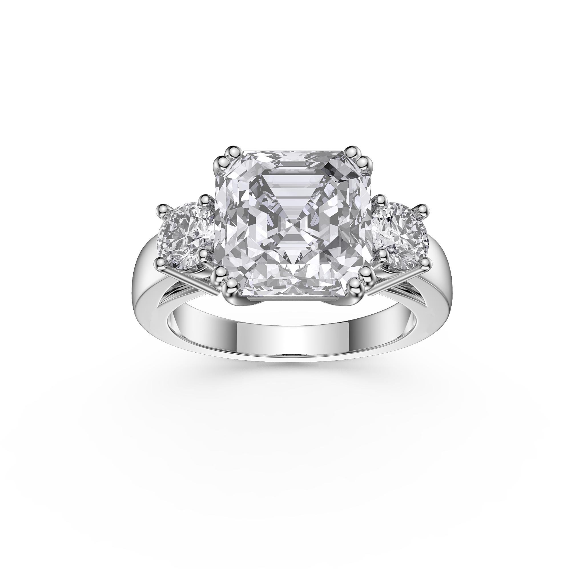 Approx. 3.5ct 8.5mm by 8.5mm Asscher Cut EF VVS Moissanite and Approx. 0.5ct (2 x 4mm) EF VVS Moissanite
