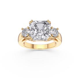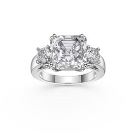 Approx. 3.5ct 8.5mm by 8.5mm Asscher Cut Laboratory-Grown Ruby and Approx. 0.5ct (2 x 4mm) EF VVS Moissanite