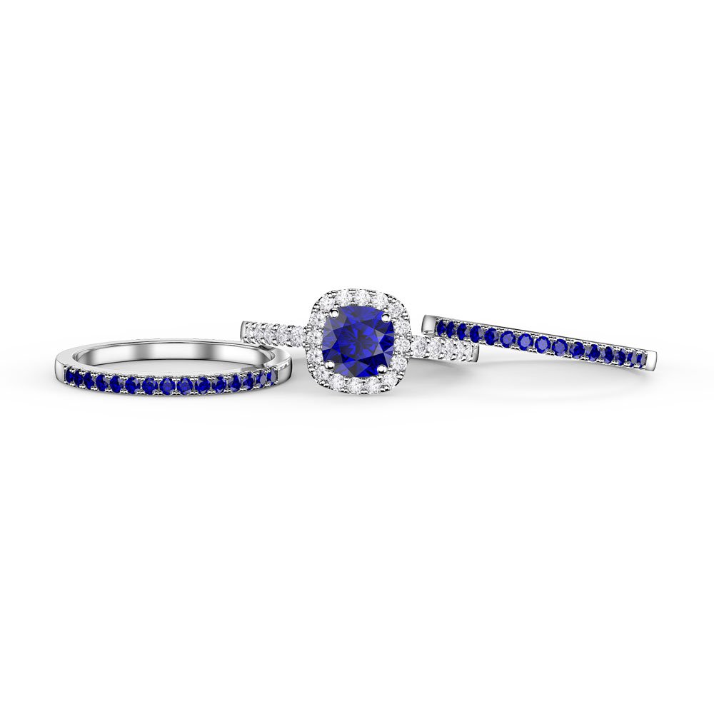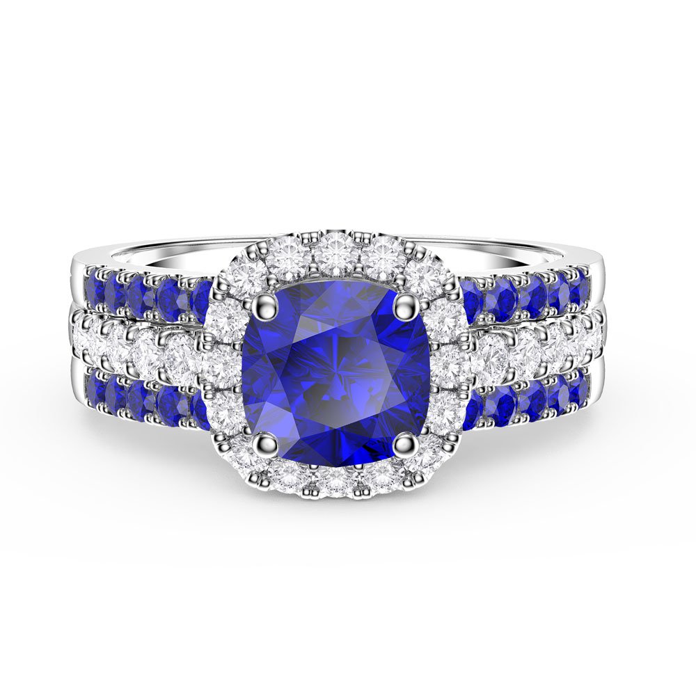 Approx. 1.0ct 6*6mm Laboratory-Grown Sapphire and Approx. 0.44ct (16 x 1.5mm, 10 x 1.7mm) EF Moissanite Halo