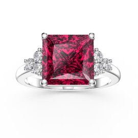 Approx. 1ct 5*7mm Emerald Cut Laboratory-Grown Ruby and Approx. 0.35ct (20 x 1.2mm, 10 x 1.5mm) Laboratory-Grown EF VS Diamonds