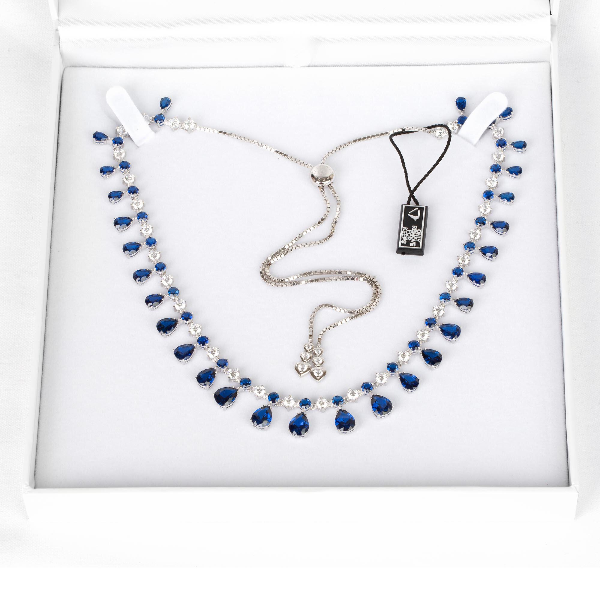 Feel like Royalty and be prepared to turn heads with this truly stunning graduated pear drop choker tennis necklace. Beautifully designed back drop adds sophistication to any outfit