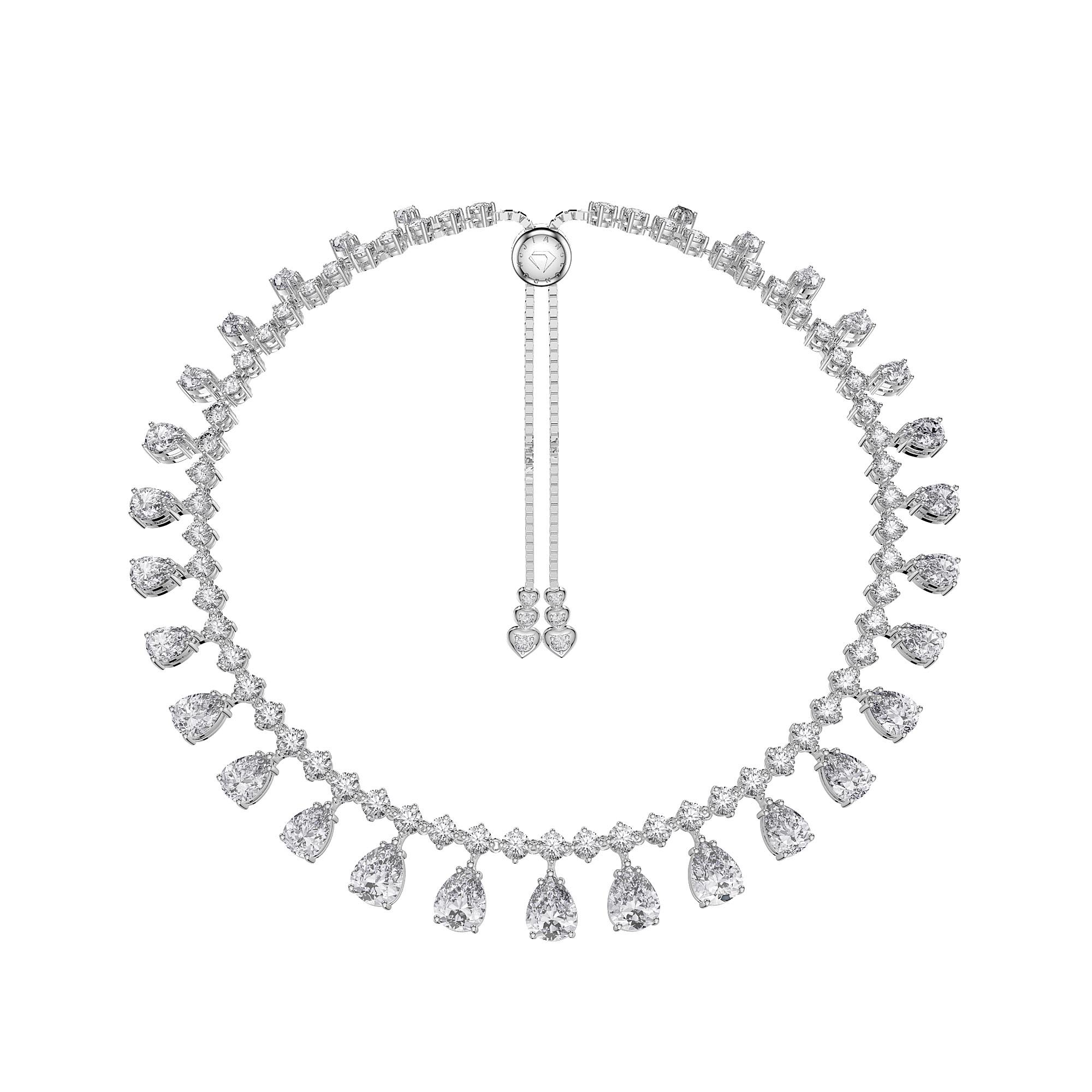Feel like Royalty and be prepared to turn heads with this truly stunning graduated pear drop choker tennis necklace. Beautifully designed back drop adds sophistication to any outfit