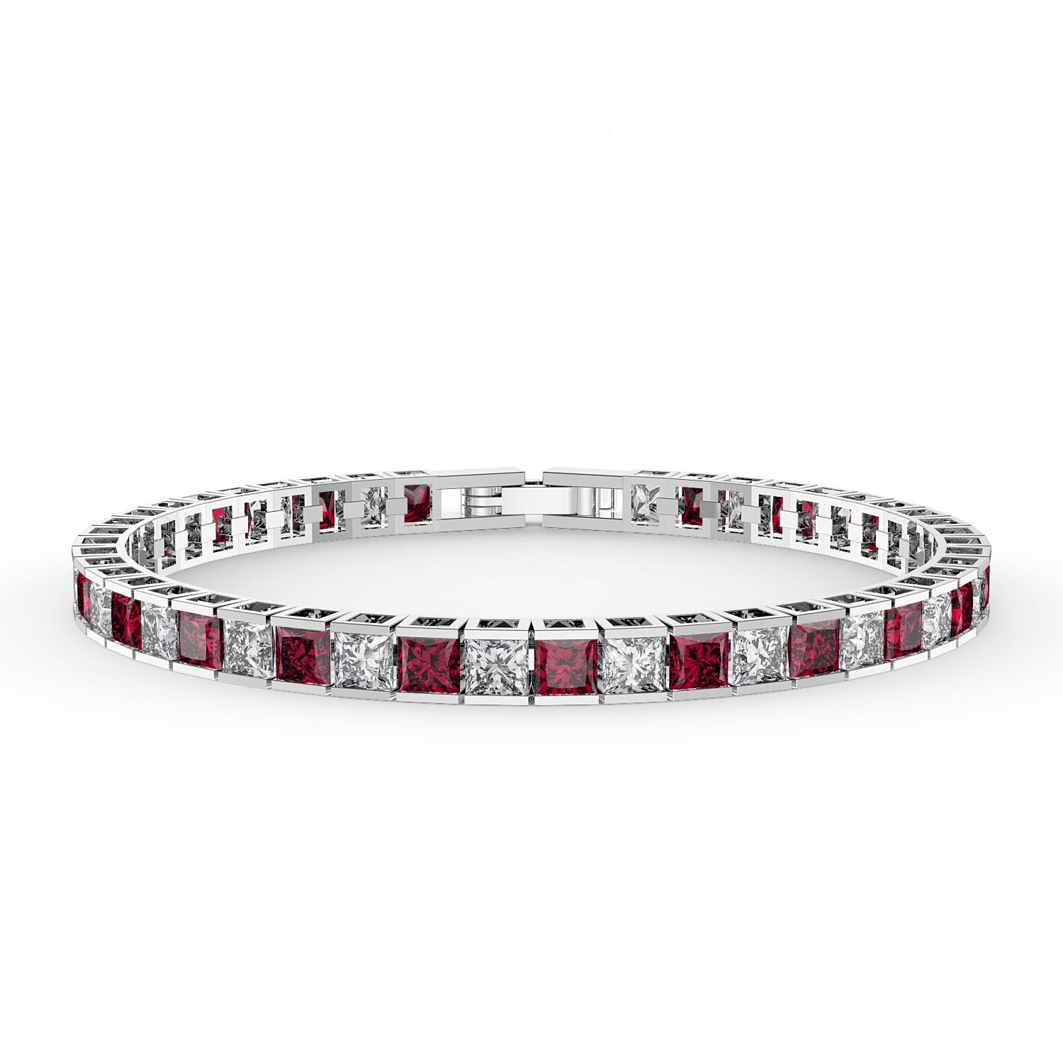 Stunning Laboratory-Grown Rubies and Laboratory-Grown White Sapphire set in a classic Sterling Silver Tennis Bracelet.
