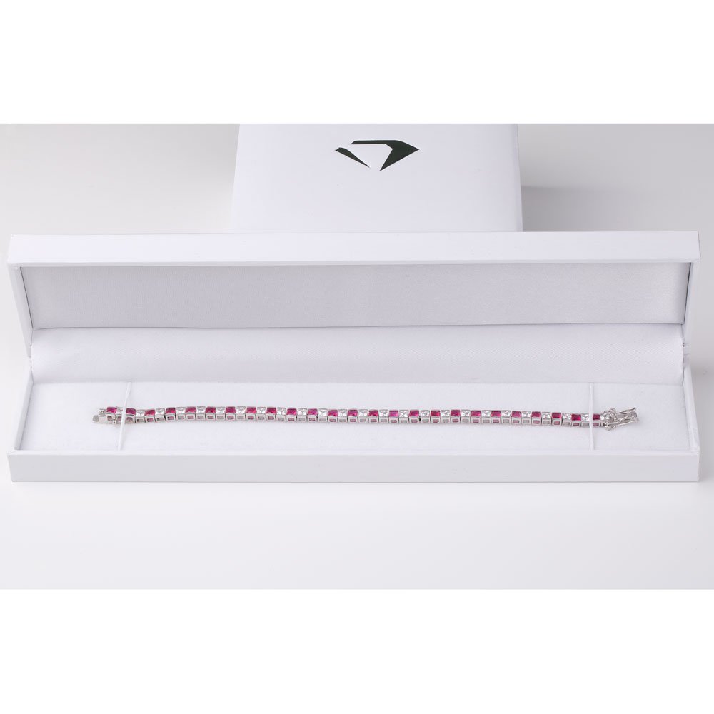 Approx. 7ct (total 46 of 3mm) Natural Ruby (Medium to Dark, Eye Clean) and GH/SI Princess Cut Diamonds for 7Inches Bracelet