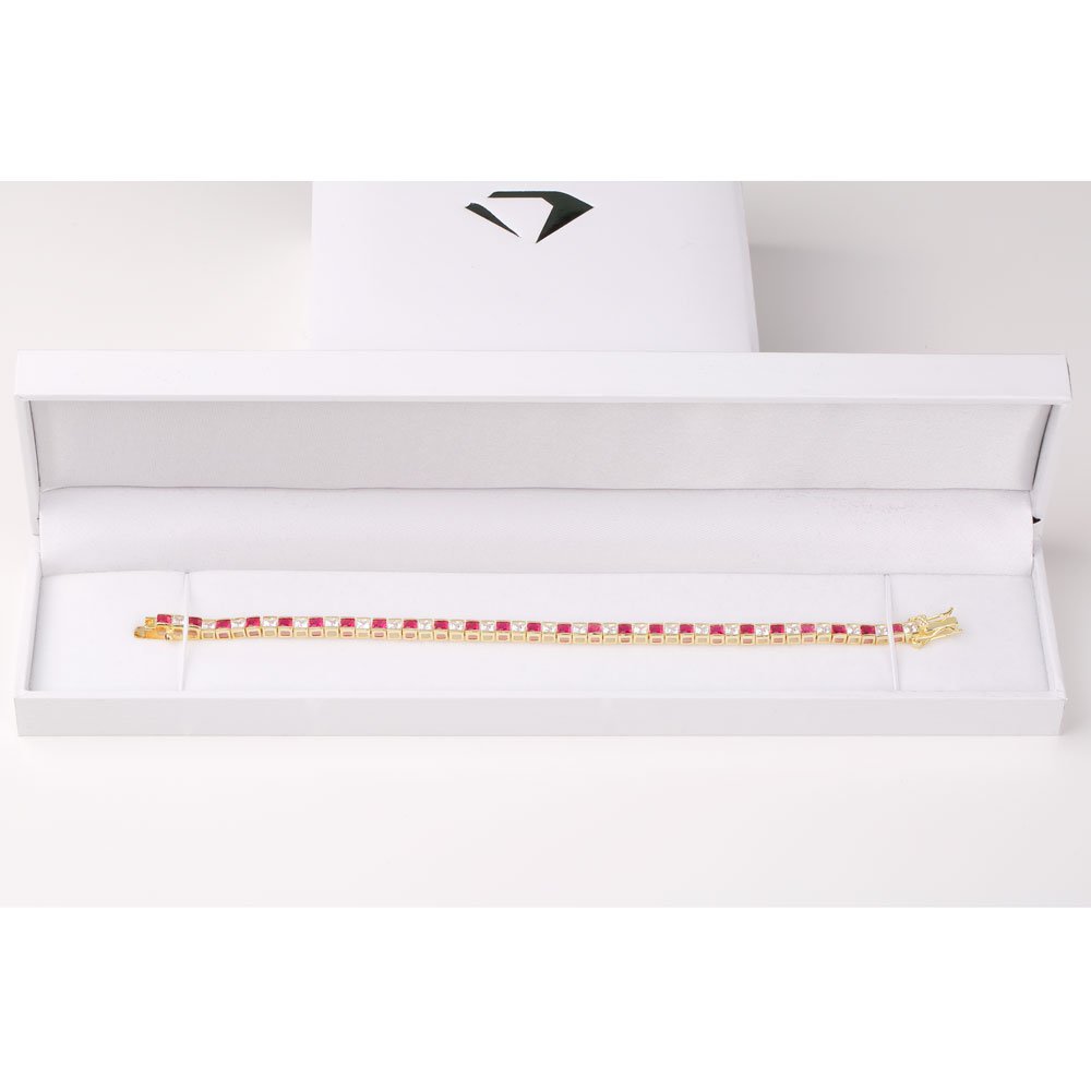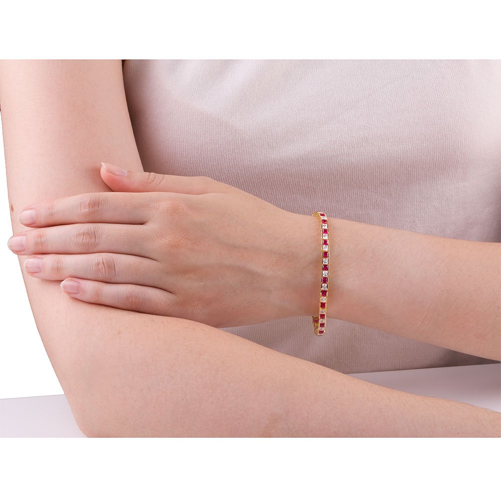 Approx. 7ct (total 46 of 3mm) Natural Ruby (Medium to Dark, Eye Clean) and GH/SI Princess Cut Diamonds for 7Inches Bracelet