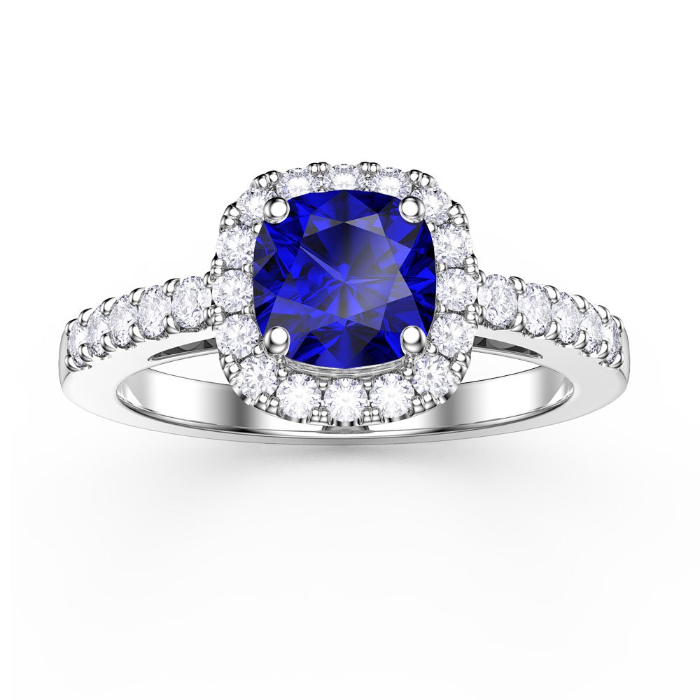 1ct Sapphire Cushion Cut in a classic Halo style setting that will make you sparkle with delight.