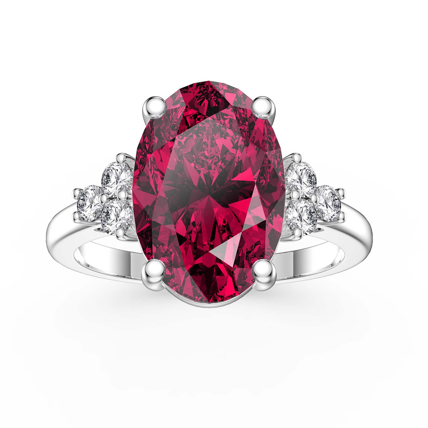 Approx. 3.5ct ( 1 of 8mm by 12mm and 6 of 2mm) Laboratory-Grown Ruby and EF VVS Moissanite