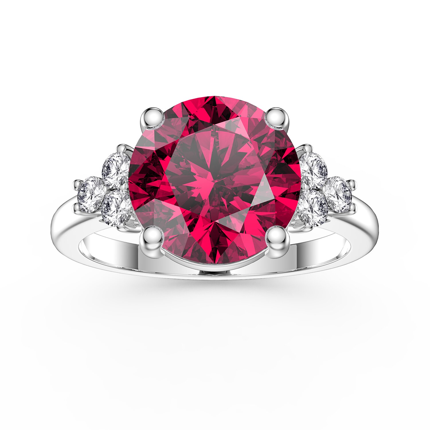 Approx. 3ct ( 1 of 9mm and 6 of 2mm) Laboratory-Grown Ruby and Laboratory-Grown EF VS Diamonds