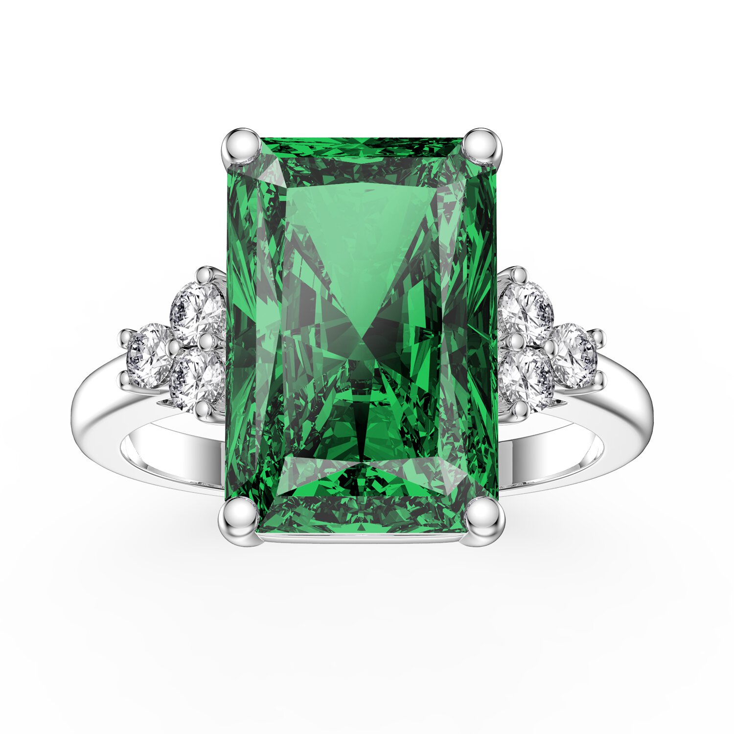 Approx. 5ct ( 1 of 8 by 12mm and 6 of 2mm) Laboratory-Grown Emerald and Laboratory-Grown EF VS Diamonds