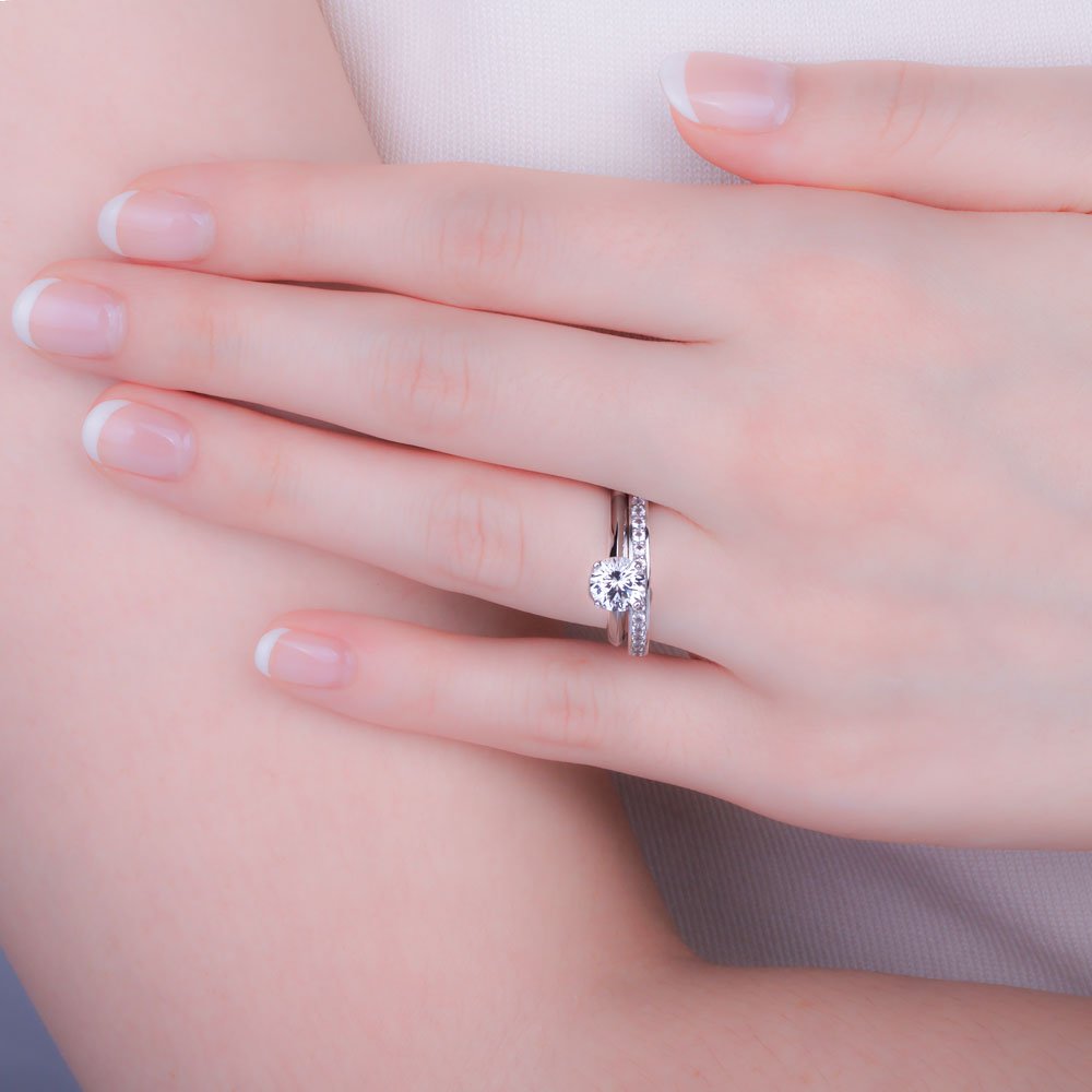 Exquisite Solitaire engagement eternity ring set. 1ct equivalent white Sapphire in timeless classic style setting with 0.5ct equivalent full eternity band.
