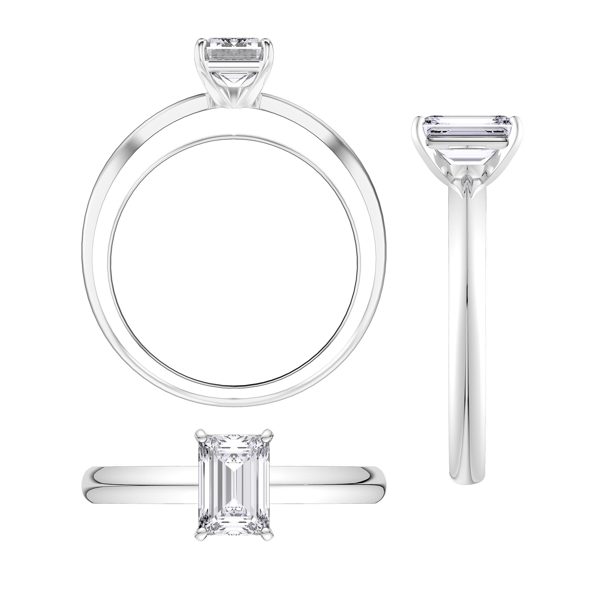 Exquisite 1ct Emerald Cut Solitaire Engagement ring in a timeless classic setting available in Platinum Plated Sterling Silver, 18ct Gold or Platinum