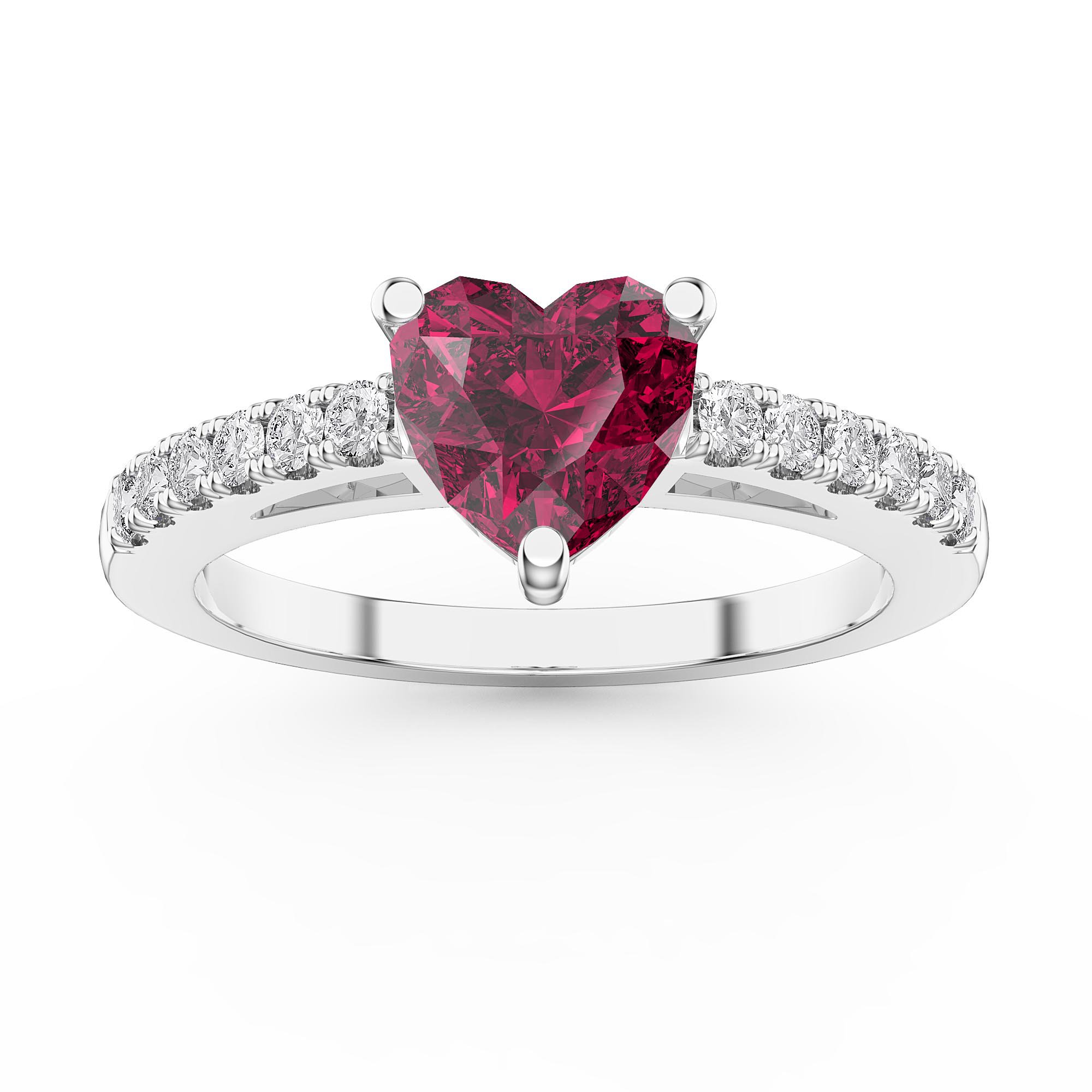 Exquisite 1ct Heart Ruby Pave ring in a timeless classic setting available in 9ct, 18ct Gold or Platinum