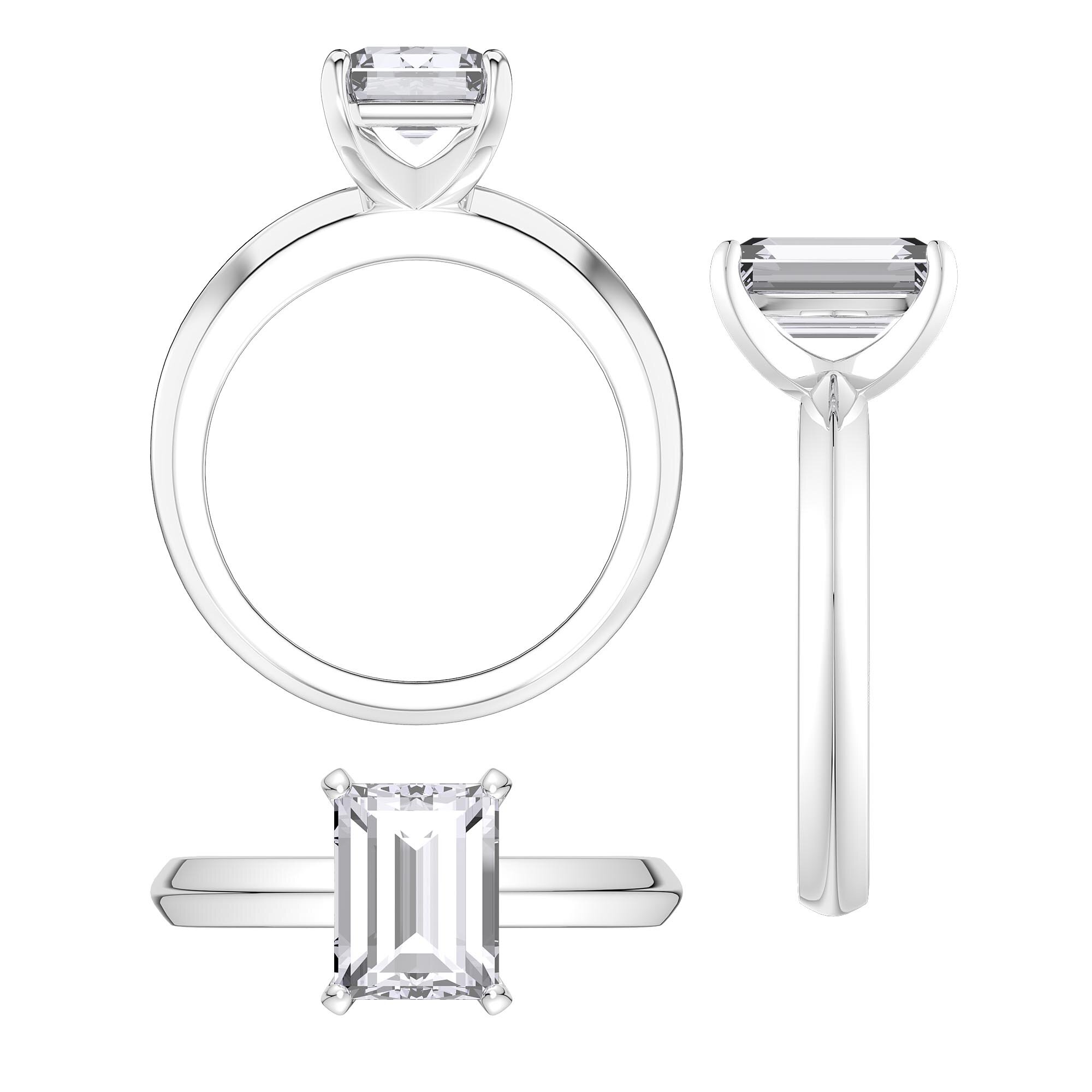 Exquisite 2ct Emerald Cut Solitaire Engagement ring in a timeless classic setting available in Platinum Plated Sterling Silver; 9ct; 18ct Gold or Platinum