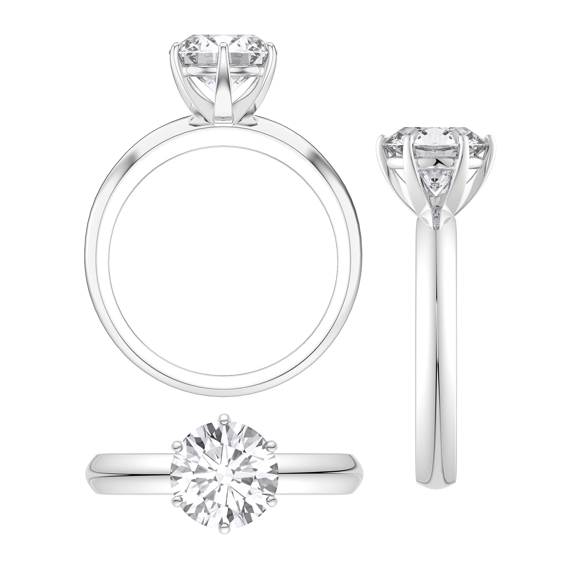 Exquisite 2.0ct Solitaire engagement ring in a timeless classic six claw setting available in Platinum Plated Sterling Silver, 18ct Gold or Platinum.