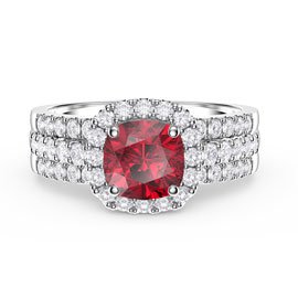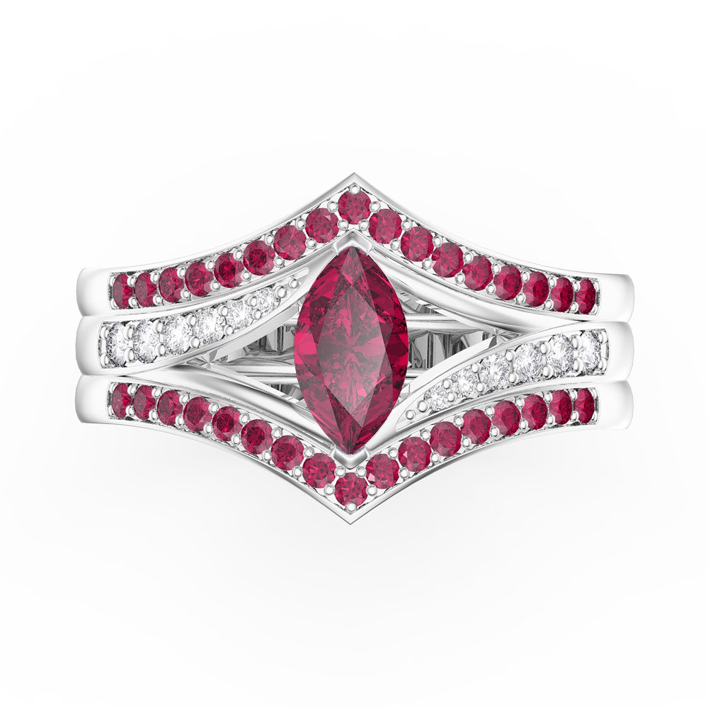 Approx. 0.5ct 4mm by 8mm Marquise Laboratory-Grown Ruby with Approx. 0.15ct (4 x 1mm, 4 x 1.25mm, 2 x 1.5mm, 2 x 1.75mm) Laboratory-Grown White Sapphire