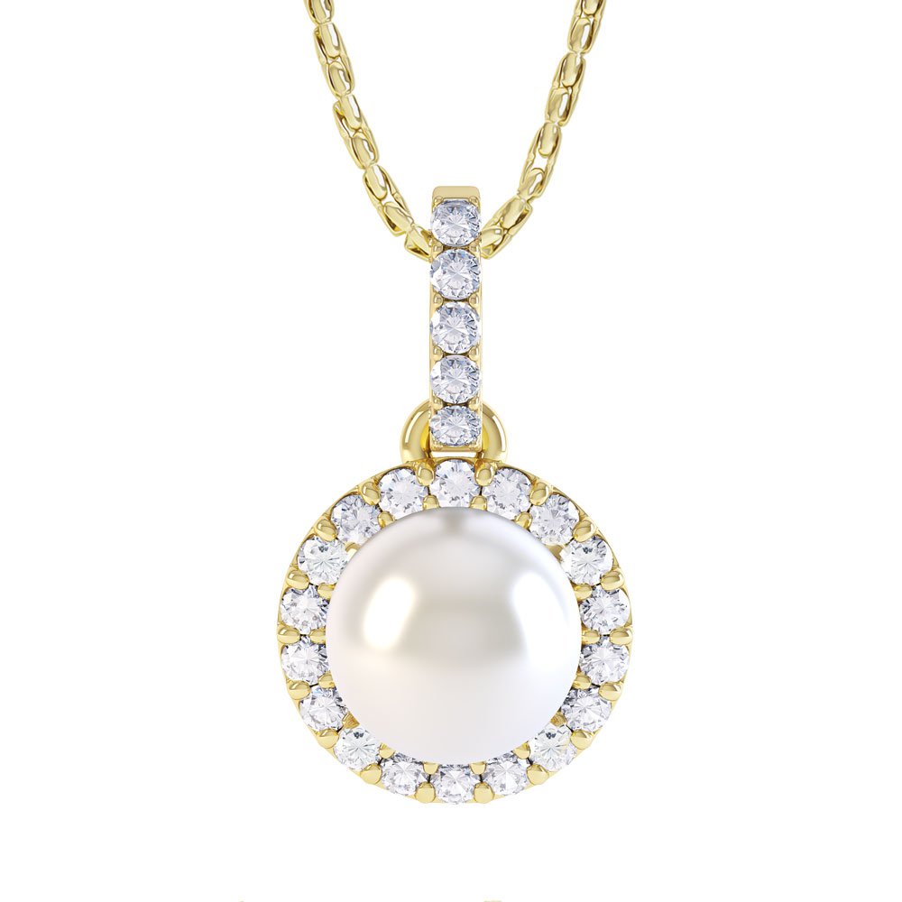 Approx. 7mm cultured Freshwater Pearl and Approx. 0.40ct (20 x 1.7mm) EF VS Laboratory-Grown Diamonds